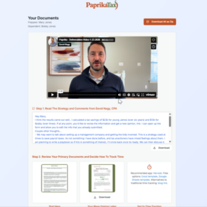 You receive a personalized video recorded by Dave Nagy, CPA, reviewing the client’s information and walking through their specific strategy. This is not generic content — the video addresses their situation directly, explains the reasoning behind the recommendations, and highlights important considerations unique to client’s family and business. While we bring deep expertise in this area, we recognize that you see the full client picture, and all recommendations are designed to support-not replace-your professional judgement. Many advisors find this makes the entire process clearer and more actionable for their clients.