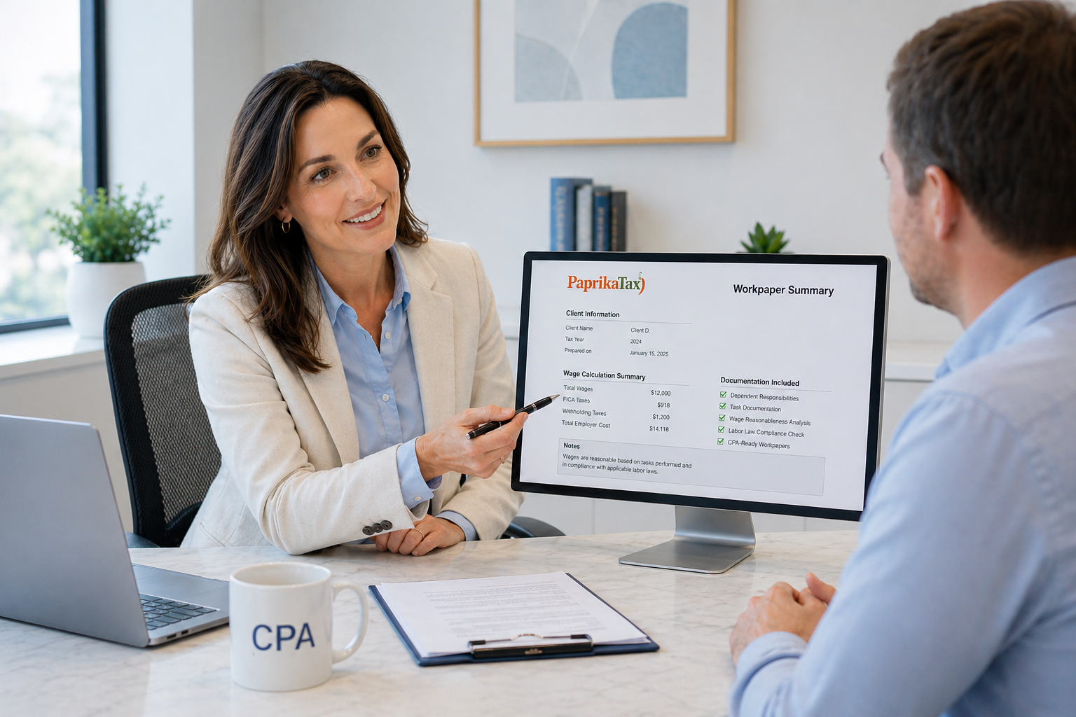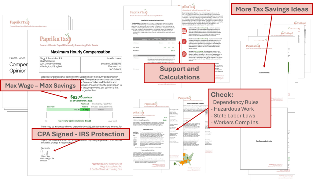 PaprikaTax delivers CPA-backed wage analysis, documentation, and family payroll planning tools for the “hire your kids” strategy. This includes audit-ready opinion letters, wage justification, compliance notes, and planning playbooks that integrate into a broader tax plan.